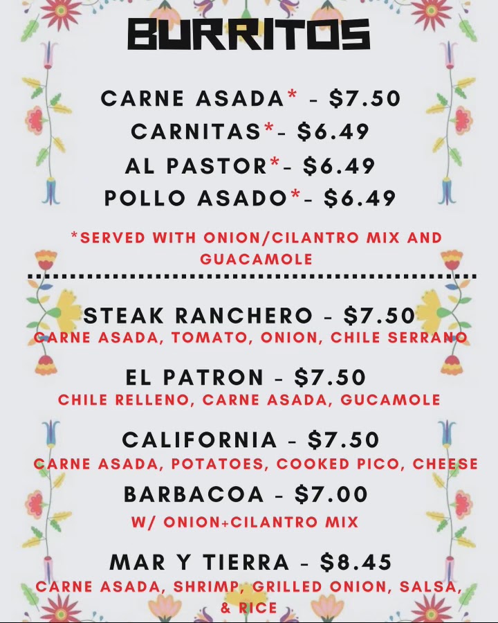 “ Best food I’ve had in this town! Carne asada fries and burritos are crazy good. Can’t wait to try the rest of their offerings I’m sure I won’t be disappointed. My wife also says it’s the best menudo she’s had. ”